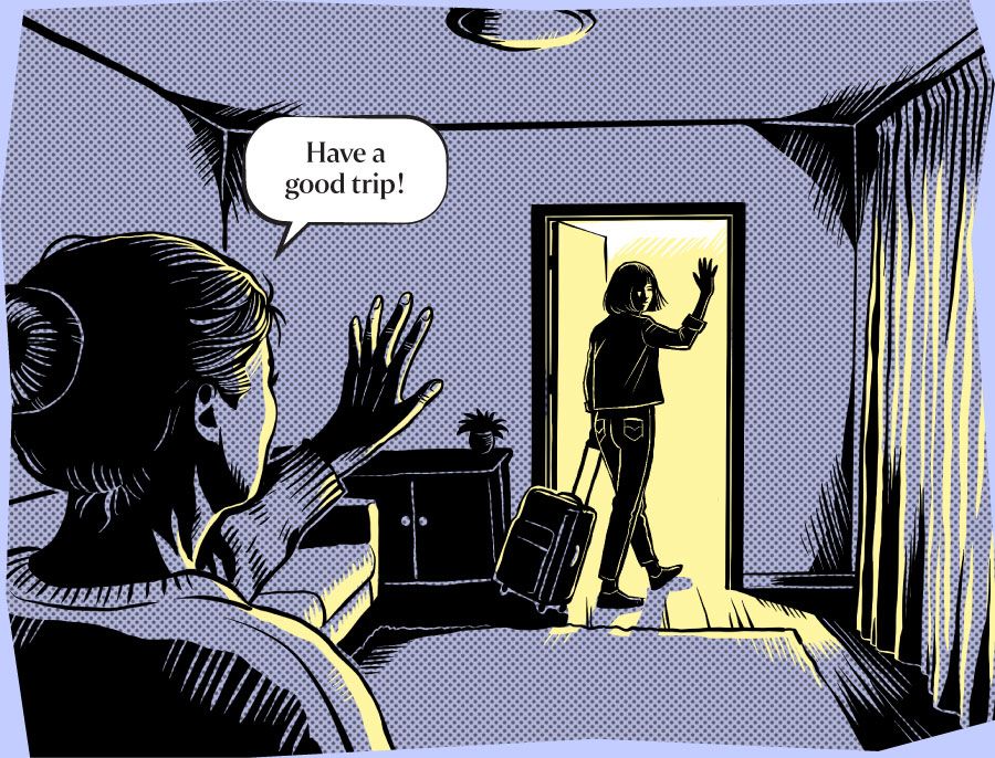 Her family does not know about her work. She usually says she is just on holiday or does not tell them when she goes out of town.