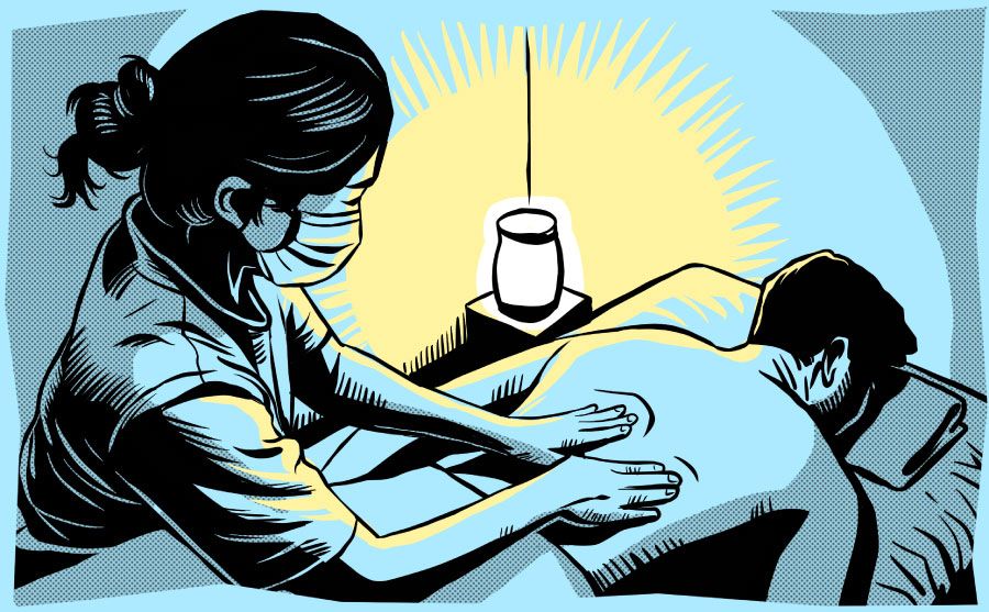 ...working long hours at a massage parlour tucked inside an unmarked building.